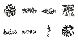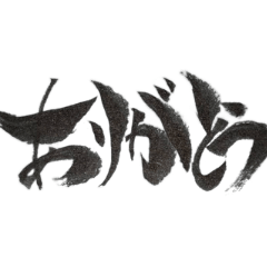 オレンジのエプロンをして、筆ペンで書いた筆文字。まずはお試しで作ってみました。GOTOman より発売