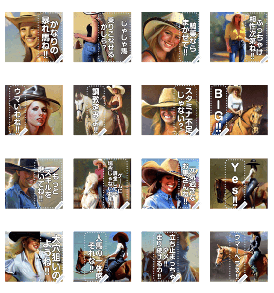 人生そんなにウマい話は無い。人間万事塞翁が馬。乗馬、騎乗スタイルの大人な金髪じゃじゃ馬娘お姉さんスタンプです。自由にメッセージ変更可能。 現在この商品は一部のスマートフォン版LINE 10.3.0以上のトークルームでのみ使用できます。動作環境の最新情報はヘルプをご確認ください。seven man より発売
