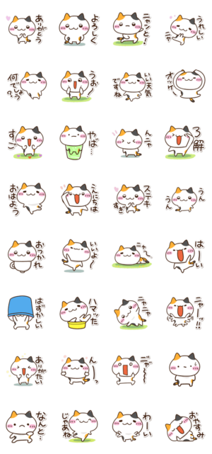 三毛猫の『みけまる』。ちいさくて丸っこいミケネコ。かわいく元気に返事ができます。「おはよう」から「おやすみ」まであります。みけねこ好きな方にぜひ。【かたこ】かたこ より発売