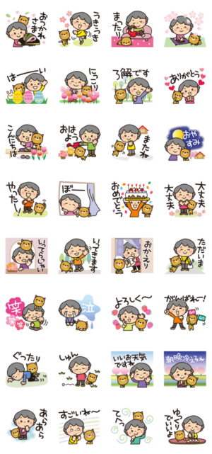 優しくてキュートなばぁばと子犬のスタンプです。Reiko より発売