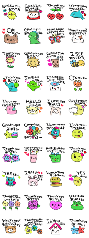 シンプルな日常会話スタンプです。日本語&英語スタンプ
