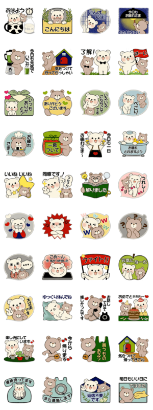 ラブリーくまさんとちょっとゆるいタッチのほのぼのくまさんの日常スタンプです。季節を問わず、どなたにでも使いやすい基本のメッセージが詰まったやさしいスタンプです。