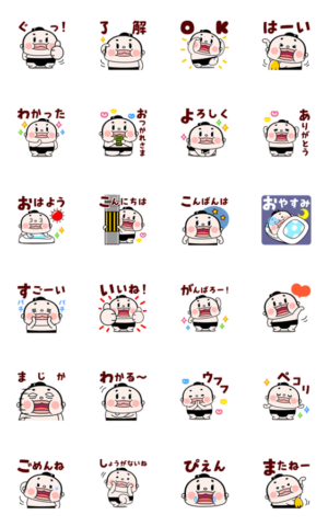 プニョプニョ動くおすもーちゃんの挨拶スタンプ。お相撲さんって可愛いよねー。毎日使える定番の挨拶と返事が揃ってます。お友達と楽しくゆるく使ってねー!