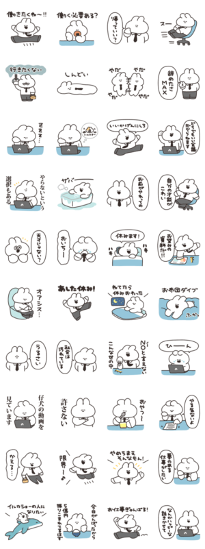 「働くうさちゃん その3」をリメイクしたスタンプです。ナポリ より発売
