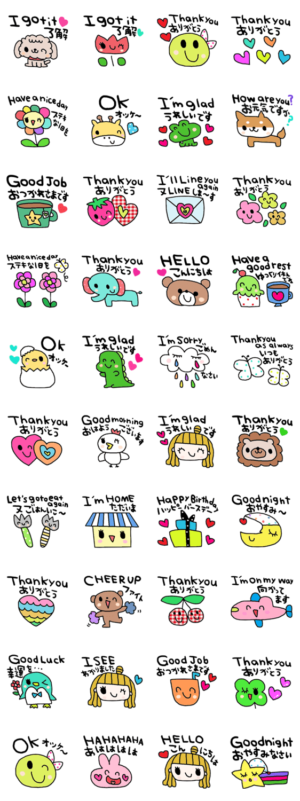 シンプルな日常会話スタンプです。日本語&英語スタンプnenerin より発売