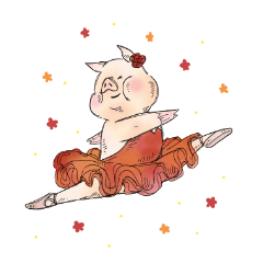 日常でも、バレエシーンでも使える挨拶やメッセージを、おちゃめなブタさんバレリーナがお届けします。