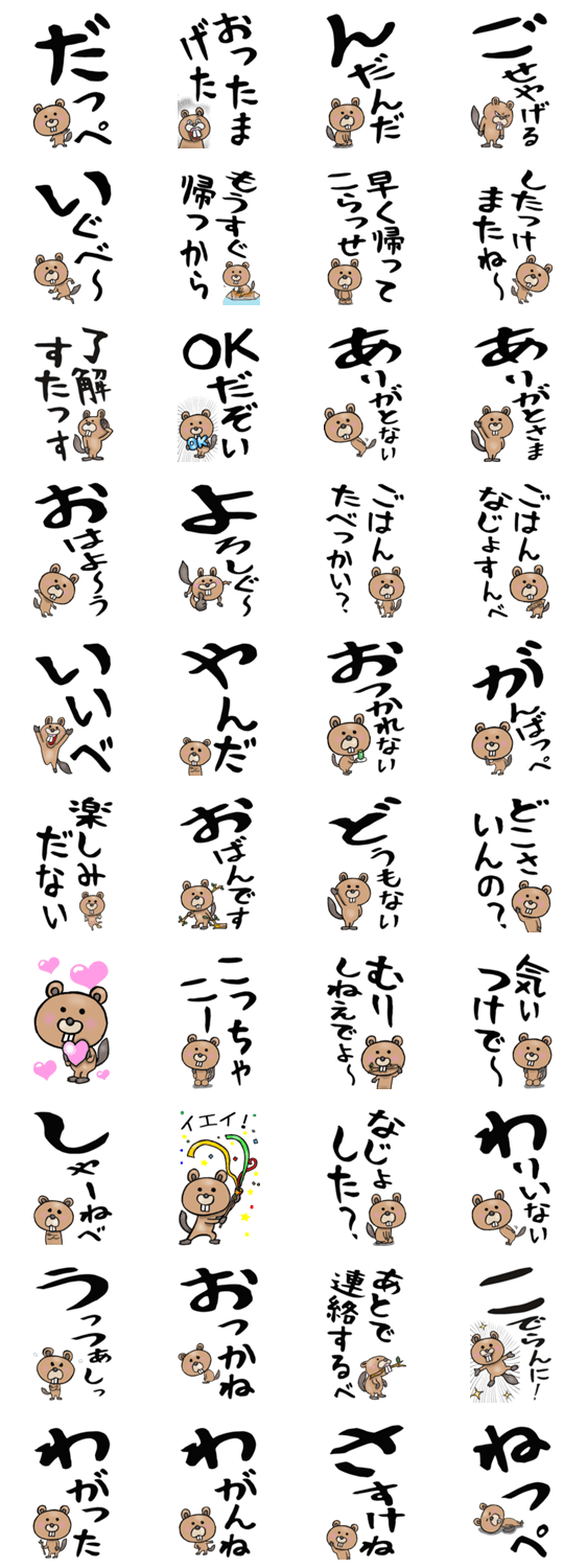 老眼や文字が小さくて読みづらい方々のための大きな文字の福島弁ビーバーちゃんのスタンプです。おじいちゃん、おばあちゃん、シニア世代の方々、どうぞ。