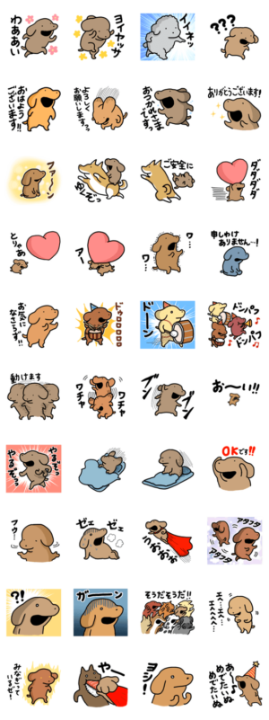 やる気に満ちあふれた元気な犬たちのスタンプです。うかうか より発売