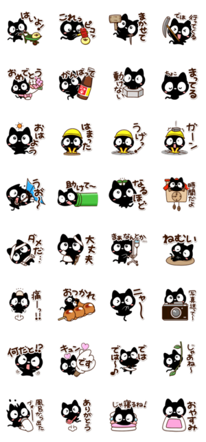 『クロネコすたんぷ』の絵文字と着せかえもあります!毎日使える、あいさつや言葉の、可愛い看板やメッセージの、くろねこスタンプ。黒猫が好きな人にぜひ。【かたこ】