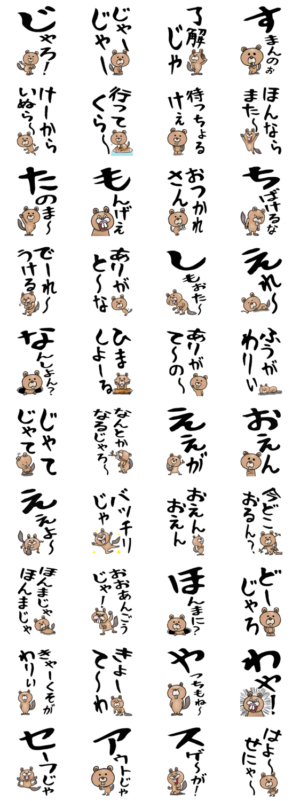 老眼や文字が小さくて読みづらい方々のための大きな文字の岡山弁ビーバーちゃんのスタンプです。おじいちゃん、おばあちゃん、シニア世代の方々、どうぞ。