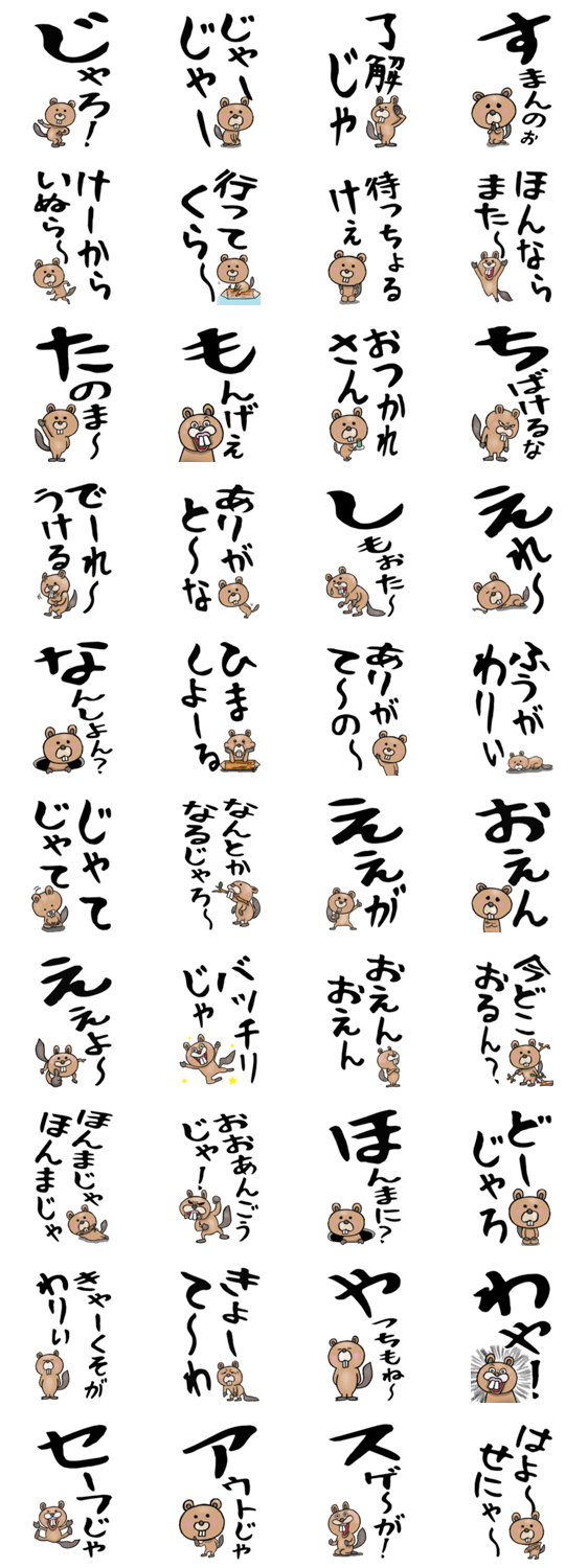 老眼や文字が小さくて読みづらい方々のための大きな文字の岡山弁ビーバーちゃんのスタンプです。おじいちゃん、おばあちゃん、シニア世代の方々、どうぞ。 ※このスタンプはトークルームで大きく表示されるBIGスタンプです。Brody Machine より発売