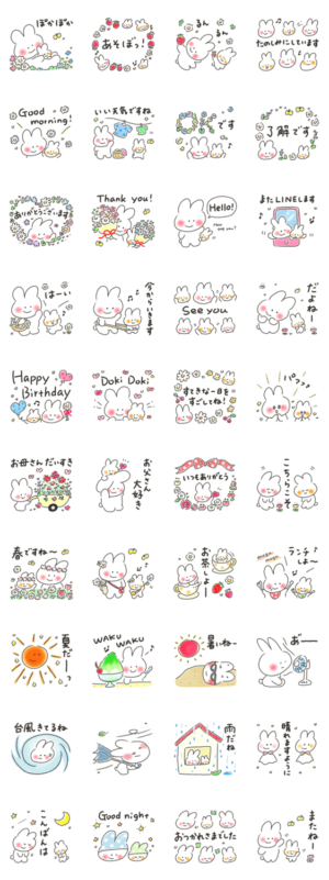 春夏、毎日使えるかわいいうさぎのあいさつスタンプ。母の日、父の日は感謝やありがとうの気持ちを伝えてね。お花もいっぱい。誕生日にも使えるよ!ともいろ より発売