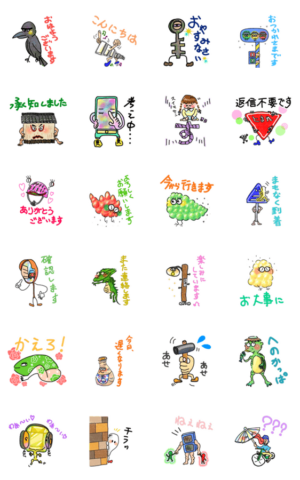 信号や標識の妖怪⁉︎ふっと周りを見渡すと妖怪はいつもみんなの傍にいます。日常で使いやすいオリジナルスタンプです♪ おはよう/こんにちは/おつかれさま/お大事にまや より発売