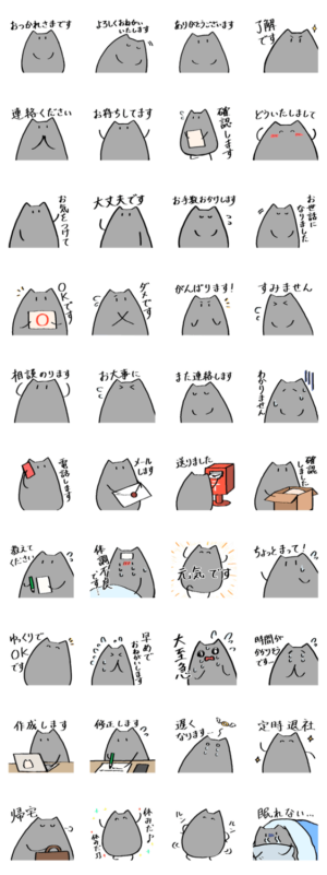 不思議なねこもふもふさんのスタンプ第3弾。仕事等でも使いやすい挨拶スタンプです。もふねむこ より発売