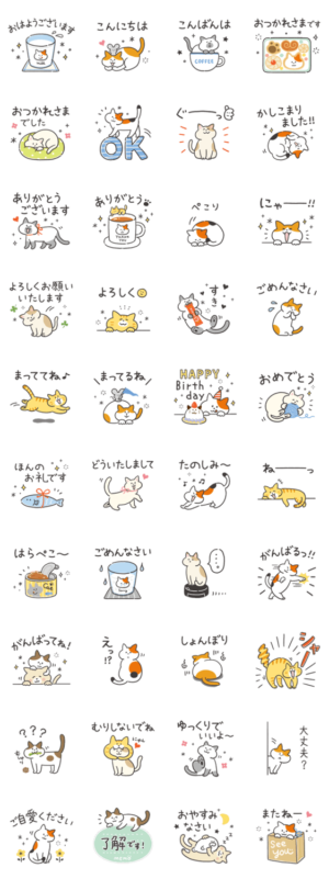 ねこカフェスタンプ (まったりあいさつ)のダウンロードはこちら↓