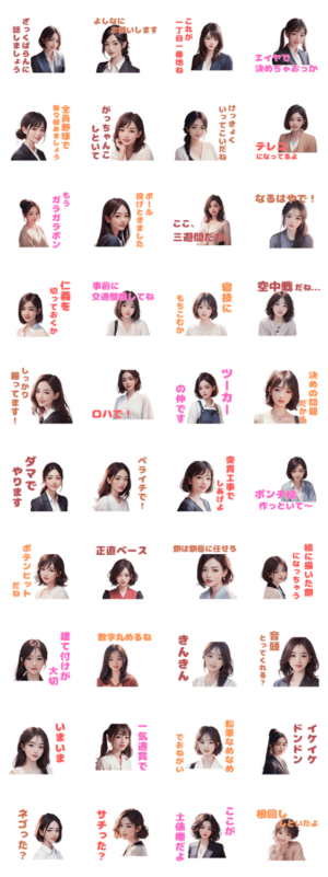 おじさんビジネス用語を使いこなすAI美女 スタンプ画像一覧