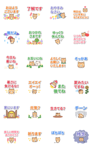 相手を気遣う言葉がいっぱいの毎日使える優しいトラネコさんのとびだすスタンプだよ♪大きな文字で読みやすい!
