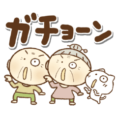愉快なおじいちゃんとおばあちゃんとねこっちの楽しく使える死語スタンプです。takopon より発売