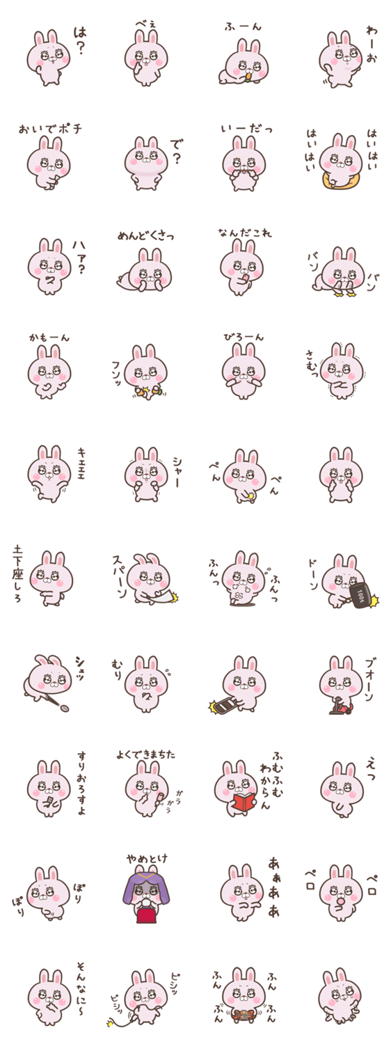 ミニでちいさいサイズのかわいくてうさぎのラピピが荒ぶって煽ります。友達や家族との会話に楽しく毎日使えるよ。あちゅ より発売