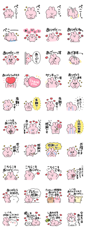 ゆるゆる~なウサギのスタンプ、ぱーと8(^▽^)♡ぺこり、感謝…敬語もあるので目上の人にも♪ありがとうがいっぱいのセットです♡