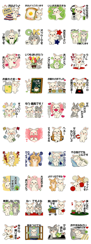 うさぎさんのほのぼの関西弁の標準語バージョンです。よく使う基本のフレーズの 敬語入り日常スタンプです。