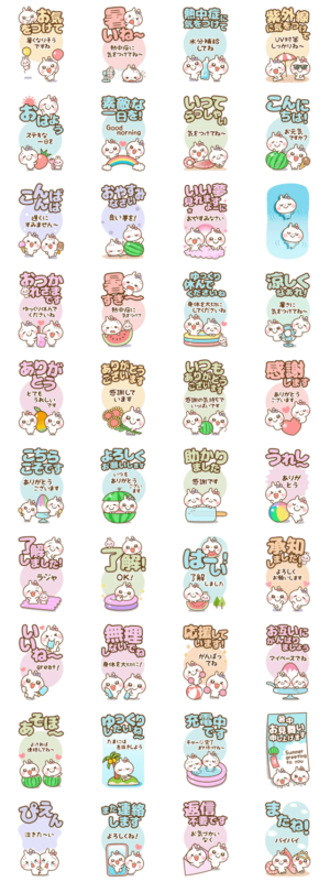 暑い夏の毎日によく使うメッセージを集めた「プチ耳BABY」の「長文」でか文字スタンプです♪暑中見舞いメッセージ付きです♫