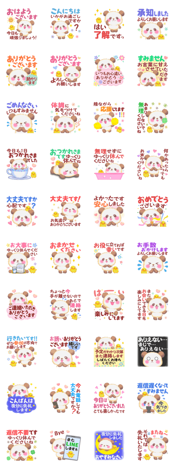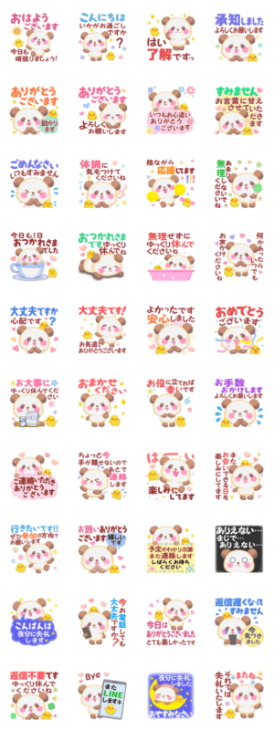 気づかいや挨拶、敬語。日常よく使う長文のメッセージを集めた Babyパンダさんのスタンプです♪めぐみん より発売