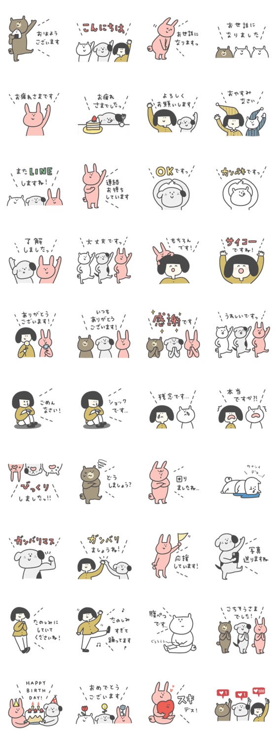 ほっこりゆる〜いイラストの、女の子や動物たちのスタンプです。今回は使いやすい敬語バージョンです!