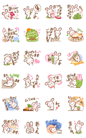 よく使う言葉❣ハート耳うさぎさん スタンプ情報
