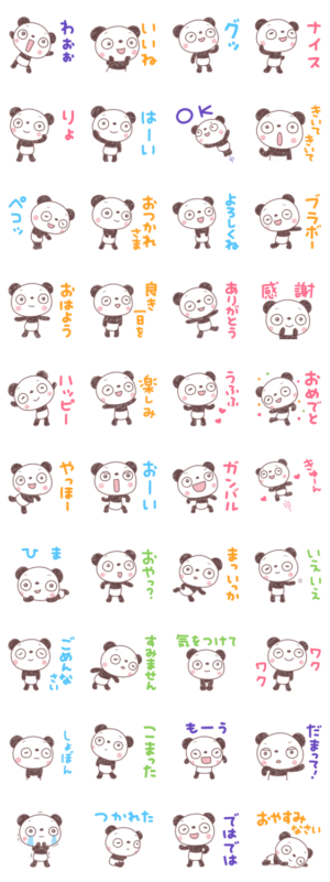「ナイス」「ありがとう」から「やっほー」まで。ゆるふわなふんわかパンダで、日常のメッセージを届けよう。家族、学校、お仕事でも。