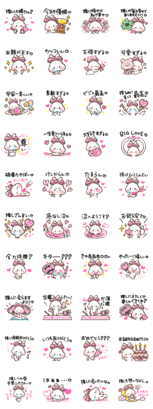 推し活★うさぎりぼん(ピンク色) スタンプ画像一覧