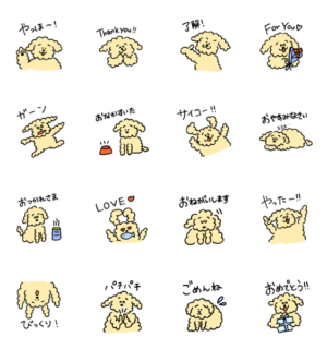もふもふ犬ティーの毎日使えるスタンプです。にぼし より発売