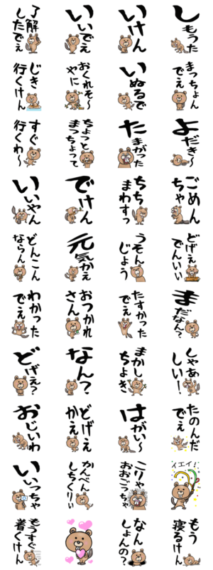 文字が小さくて読みづらい方や老眼の方ための大きな文字の大分弁ビーバーちゃんのスタンプです。おじいちゃん、おばあちゃん、シニア世代の方々もどうぞ。 ※このスタンプはトークルームで大きく表示されるBIGスタンプです。Brody Machine より発売