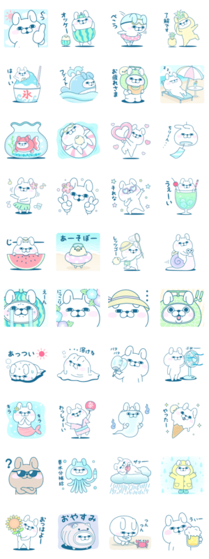 かわいいうさぎさんの夏のパステルカラースタンプです。 ※ゲスト出演:ひよこさんヨッシースタンプ より発売