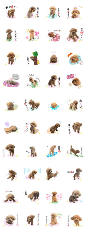 トイプードルのユキナちゃんスタンプです。日常会話でよく使う言葉とほんわか編を選びました♪yukinaco より発売