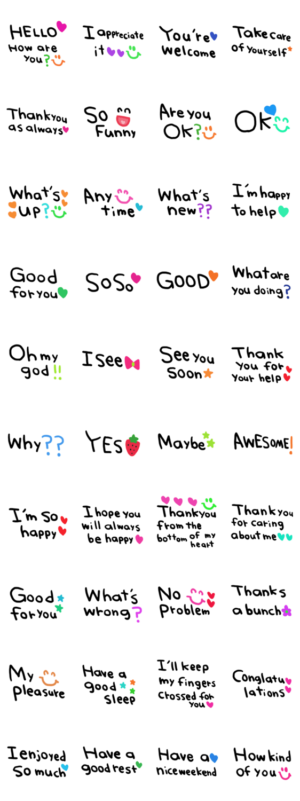 シンプルな日常会話スタンプです。英語スタンプnenerin より発売