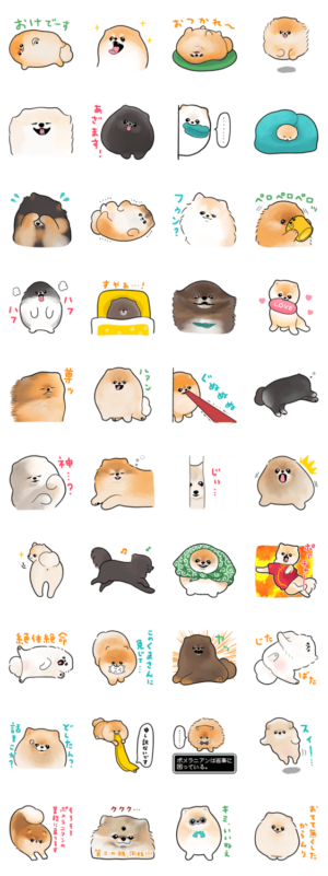 文字が少なめの上級者向けポメラニアンスタンプです。すみません、ぽぽちは描き忘れました。ぽこ より発売