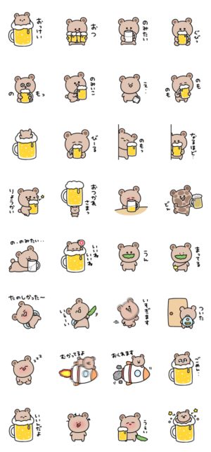 のんべえ♡シュールなミニくまのスタンプです。eribo より発売