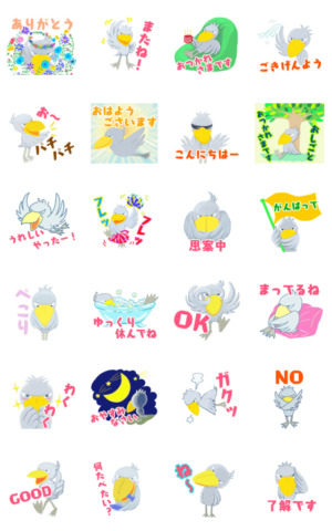 かっこ良くて、可愛いハシビロコウの日常使えるスタンプですtakada kiyoko より発売