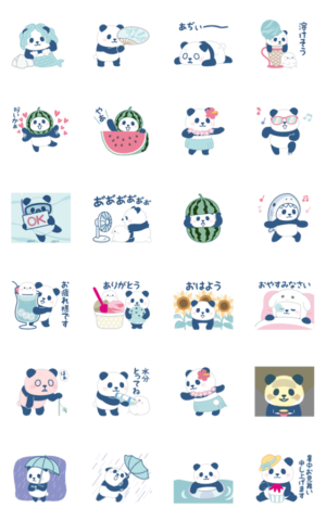 夏に使えるパンダンミニのアニメーションスタンプですなかむら けんたろう より発売