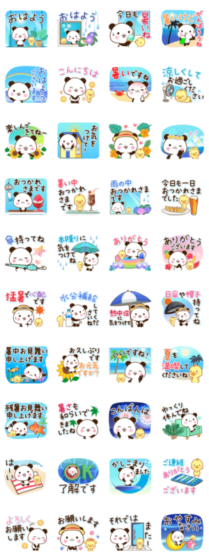 パンダ&ひよこ 夏の挨拶 スタンプ画像一覧
