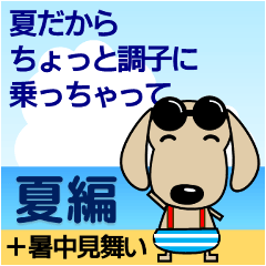 夏だからちょっと調子に乗ってるダックスフンド,犬 日常会話に使いやすいゆるいふんわり。敬語。字が見やすい。海,暑中見舞い,お父さん,父の日,ハワイ,熱中症注意,あつい