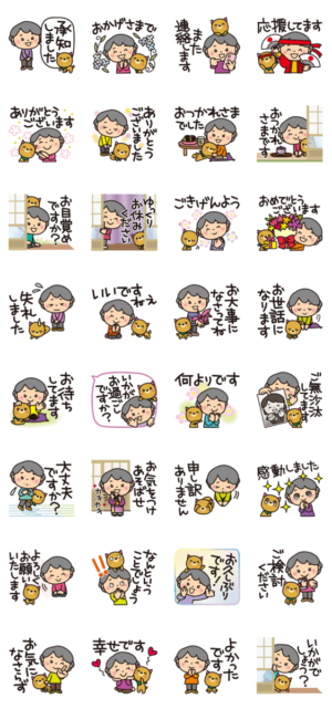 優しくてキュートなばぁばと子犬の使いやすい日常スタンプです。重くなりすぎずに使いやすい敬語・丁寧語です。Reiko より発売