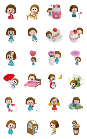 えがお♡女子 2 (飛び出す! 3DCGアニメ) スタンプ画像一覧
