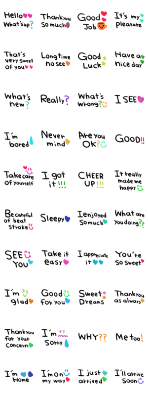 シンプルな日常会話スタンプです。英語スタンプnenerin より発売