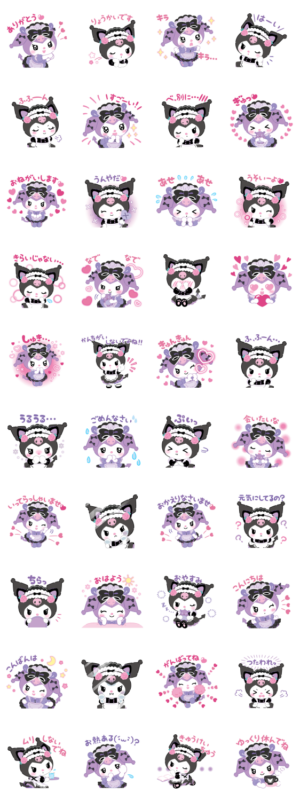 メイドさんの格好をしたクロミちゃんがとってもかわいいスタンプです
