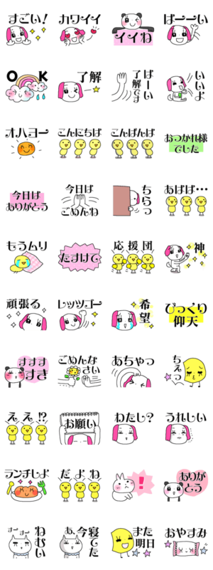 文字が大きくて見やすい、サクッと送れる40個。シンプルで明るく前向きな気持ちが伝わる大人やさしい簡易スタンプです。(ぴよみ/しろね子)Konko3 より発売
