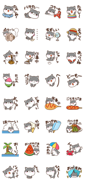 ちいさい黒い柴犬の『ちびクロシバ』。かわいく返事ができる黒イヌの、便利な夏スタンプ。暑い時期に使いやすいです。可愛い、くろいしばいぬ好きの方にぜひ。【かたこ】かたこ より発売