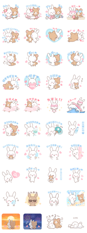 うさくまスタンプの夏バージョンです!恋人や夫婦、カップルのためのラブスタンプ♡