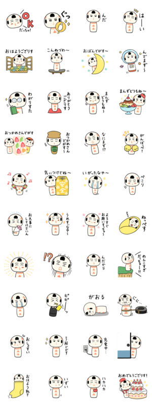 いぎなしなまってる「仙台弁こけし」シリーズ第37弾だっちゃ!季節を問わず毎日使えるスタンプでがす〜♪jugo より発売